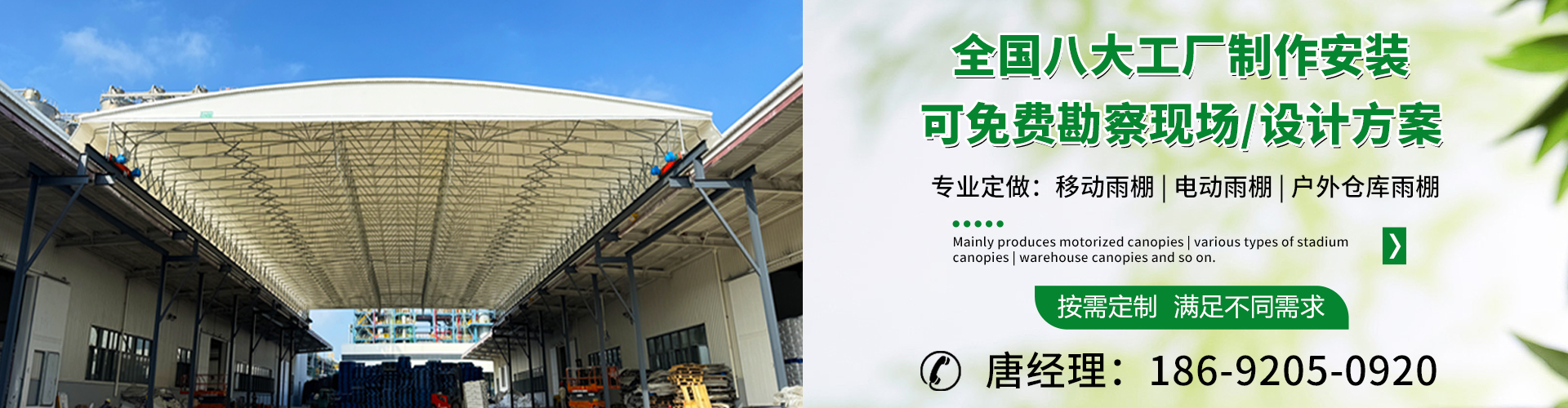 湖南鑫建華鋼結構工程有限公司是一家電動雨棚、膜結構車棚研發,生產銷售,施工安裝于一體的專業鋼結構科技公司,主要產品有伸縮雨棚,電動雨棚,膜結構車棚等。  湖南地區職員目前有200多人,自建廠房15600平方米,配備先進的生產流水線,使每件品質產品的堅實基礎。  公司在衡陽,蘇州,天津,濟南,鄭州,江門,佛山,武漢,重慶均設有服務工廠,擁有專業的技術團隊,配備先進的設備和流水線生產,產能高,貨源充足,發貨速度快,服務區域廣。  移動伸縮棚適用于通道臨時倉儲、戶外運動遮陽、污水池遮蓋、能源交通、熱力化工、礦山、船舶制造及市政建設、物流、碼頭等領域的構件制作加工,成品半成品存放、倉庫、野外儀器設備操作用房等。尤其是對工廠發貨、倉儲臨時遮雨防嗮,梅雨期較長、建設周期較短的工程施工等特別適用。還可根據用戶需求量身定制、適合企業所需不同款式的產品。  我公司堅持“誠信社會為本,客戶滿意為榮”的經營理念,做到質量把控,嚴格管理,精益求精,恪守承諾。使鑫建華逐步走向成熟,其系統化、專業化日趨完善。以專業的技術、科學的管理,更高的產品質量,優良的企業信譽,真誠的客戶服務,靈活多樣的經營方式和務實創新的企業精神愿與社會各界攜手合作,為推動智能鋼結構建筑事業的發展而不斷努力。...